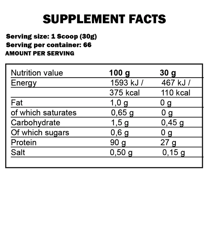 Recommended use: Mix 1 scoop of powder with 200-250 ml water or milk. Use before or immediately after workout.
