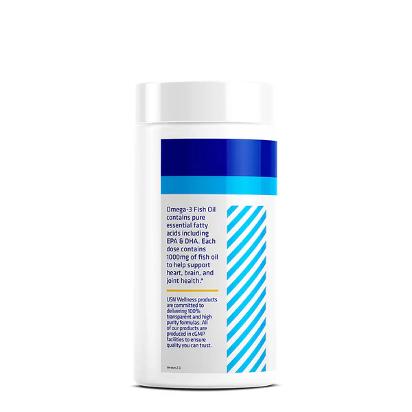 USN NEW LOOK FISH OIL: USN Omega-3 Fish Oil is a supplement loaded with Omega-3 essential fatty acids (EFAs)